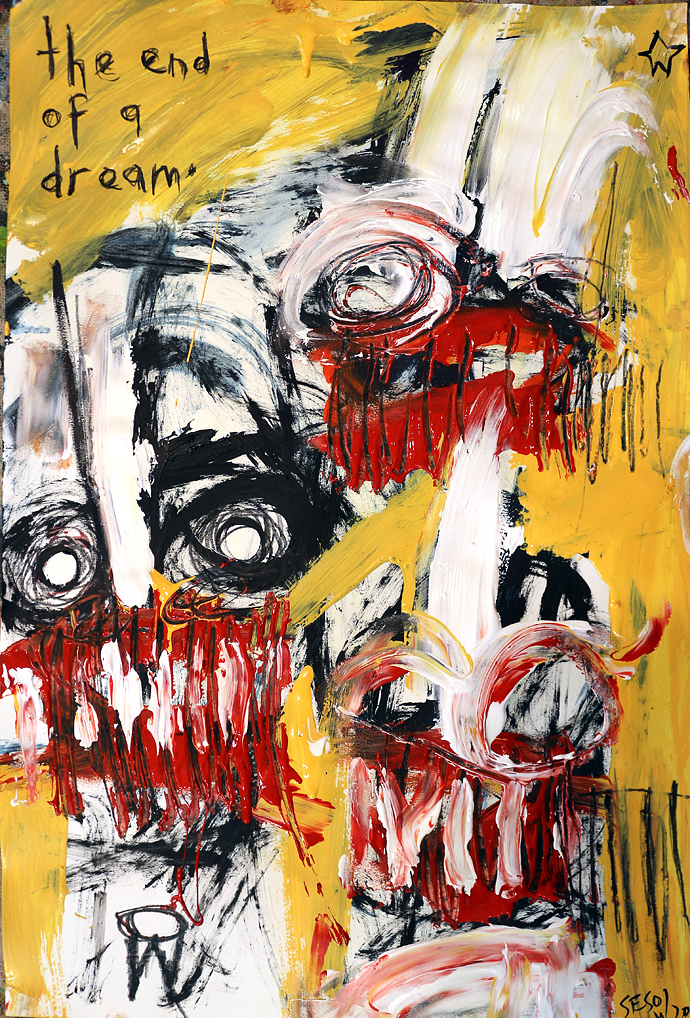 "The End of a Dream" oil/acrylic on paper 12" x 18" *SOLD email sesow@sesow.com to reserve/ask about purchasing. please include url and description. |