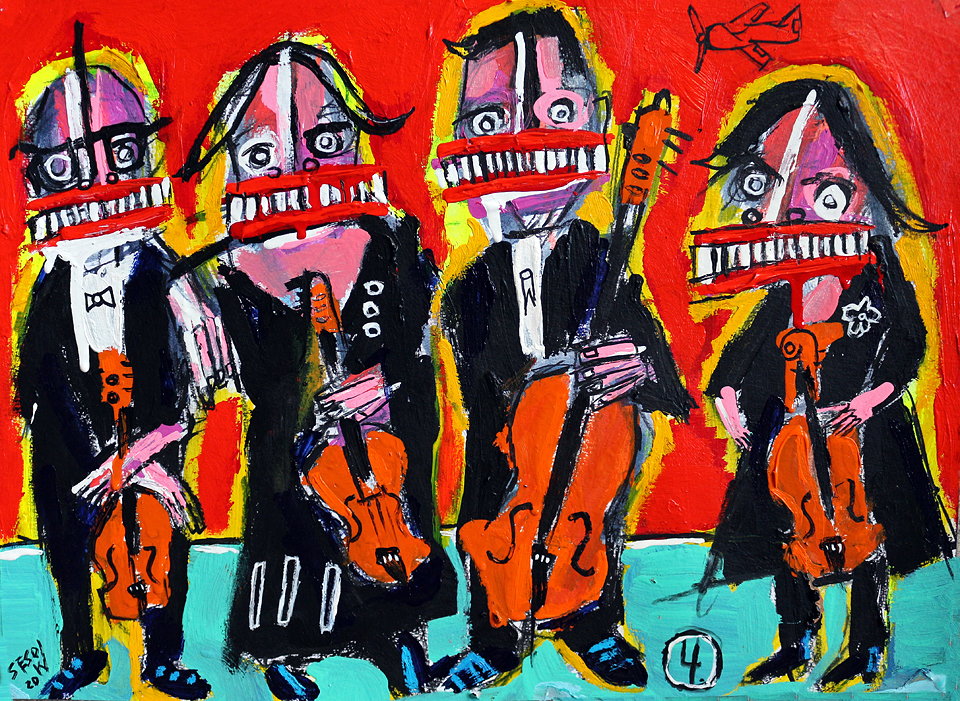 "Playtime (quartet)" acrylic/mix on watercolor paper 11" x 15" *SOLD email sesow@sesow.com to reserve/ask about purchasing. please include url and description. |