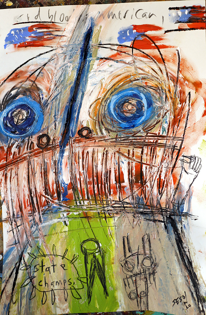 "Red Bloodied American" oil/acrylic on paper 12" x 18" *SOLD email sesow@sesow.com to reserve/ask about purchasing. please include url and description. |