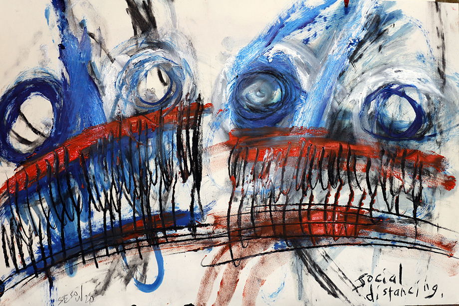 "Social Distancing" oil/acrylic on paper 12" x 18" *SOLD email sesow@sesow.com to reserve/ask about purchasing. please include url and description. |