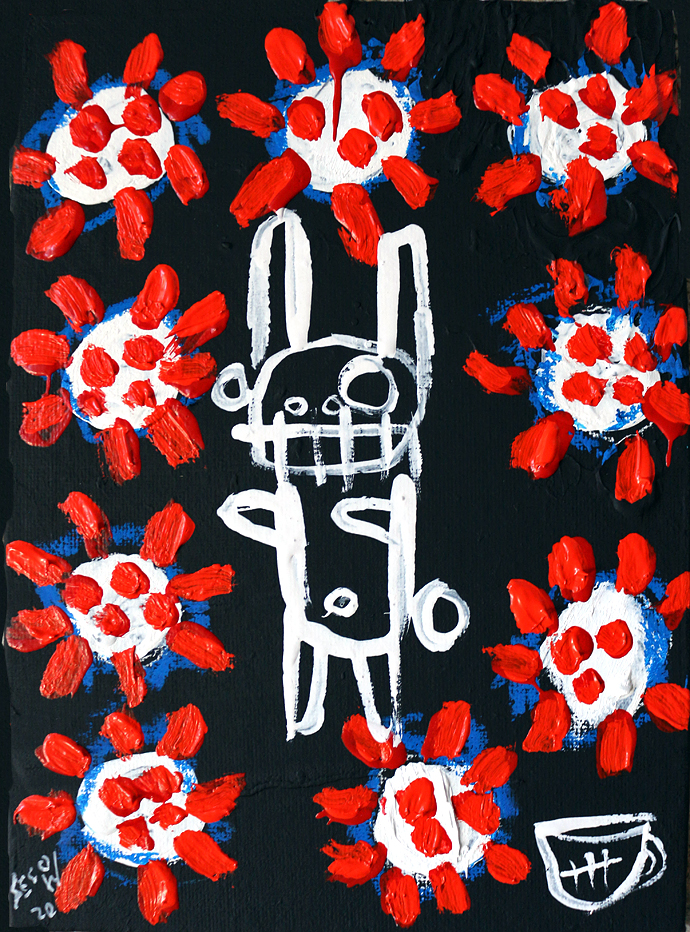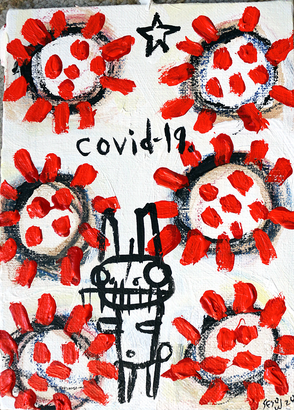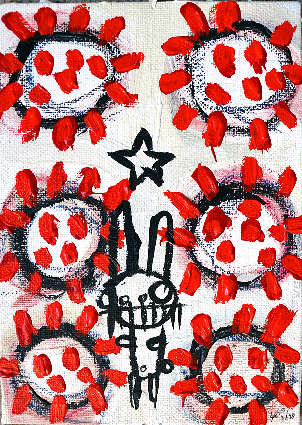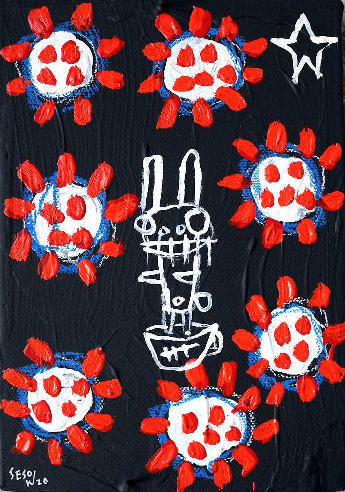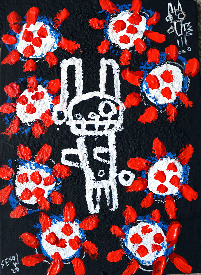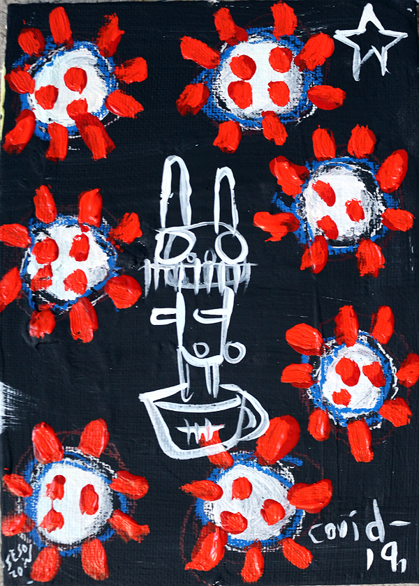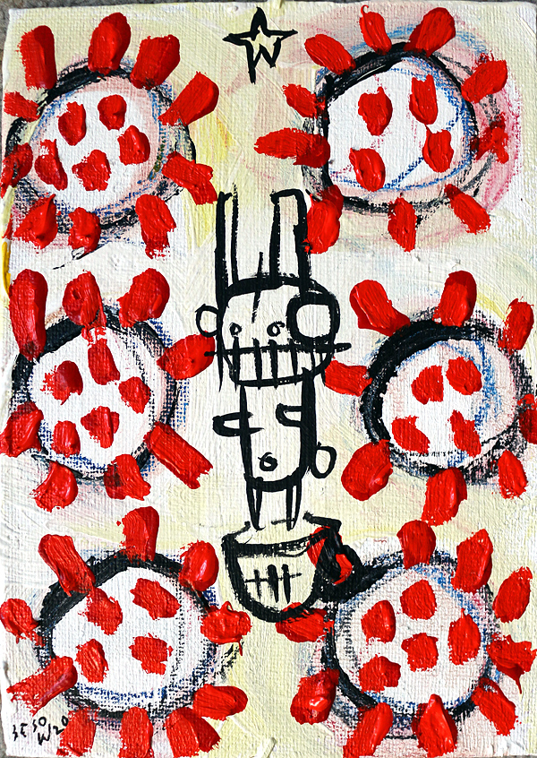 "Covid-19." oil/acrylic on paper 12" x 18" *SOLD email sesow@sesow.com to reserve/ask about purchasing. please include url and description. |