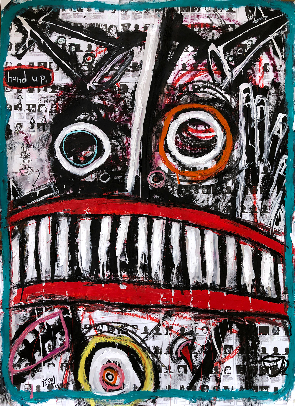 "Hand Up" acrylic/mix on archival paper 33" x 45" *SOLD acquired paper from Felix Gonzalez-Torres exhibit "Always to Return" National Portrait Gallery DC email sesow@sesow.com to reserve/ask about purchasing. please include url and description. |