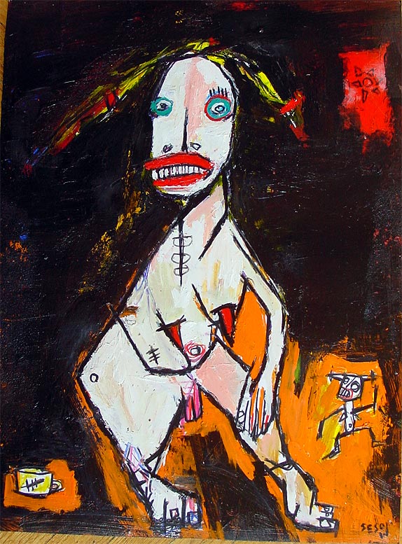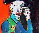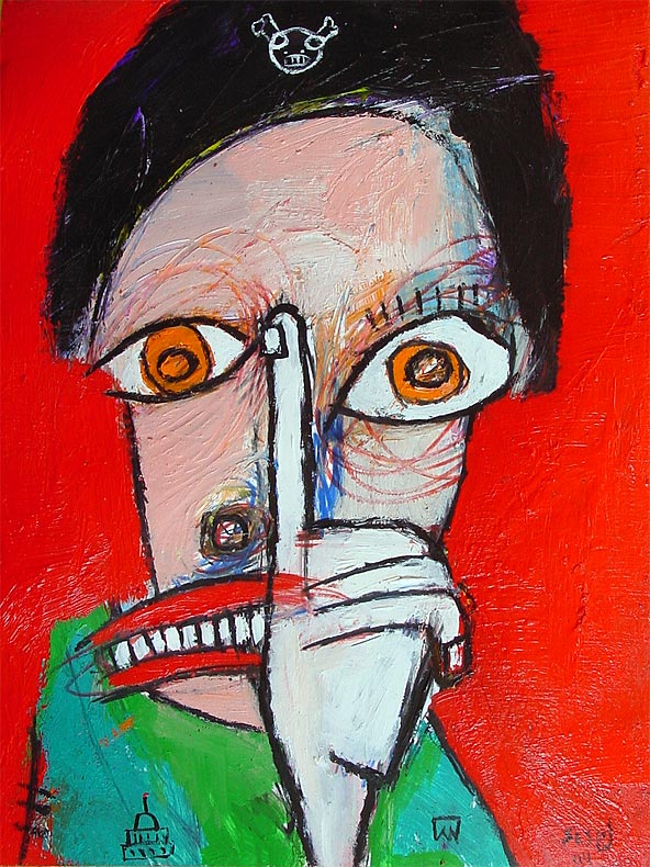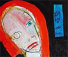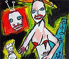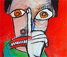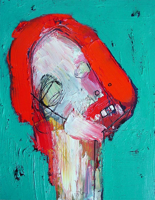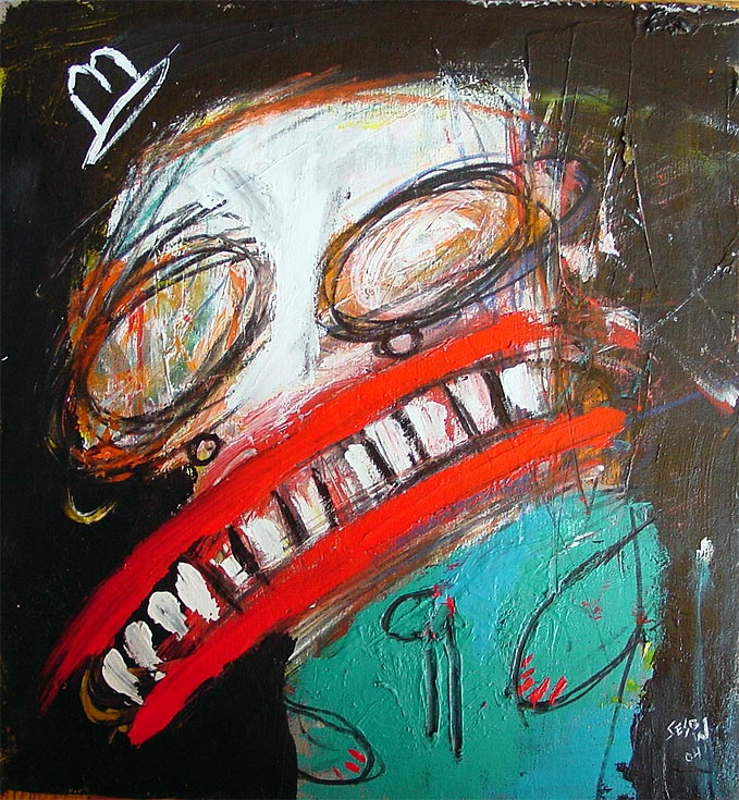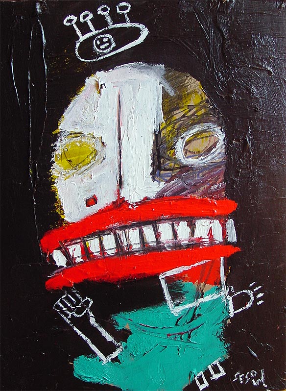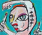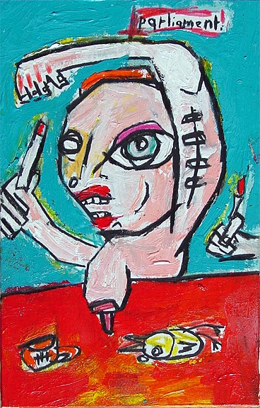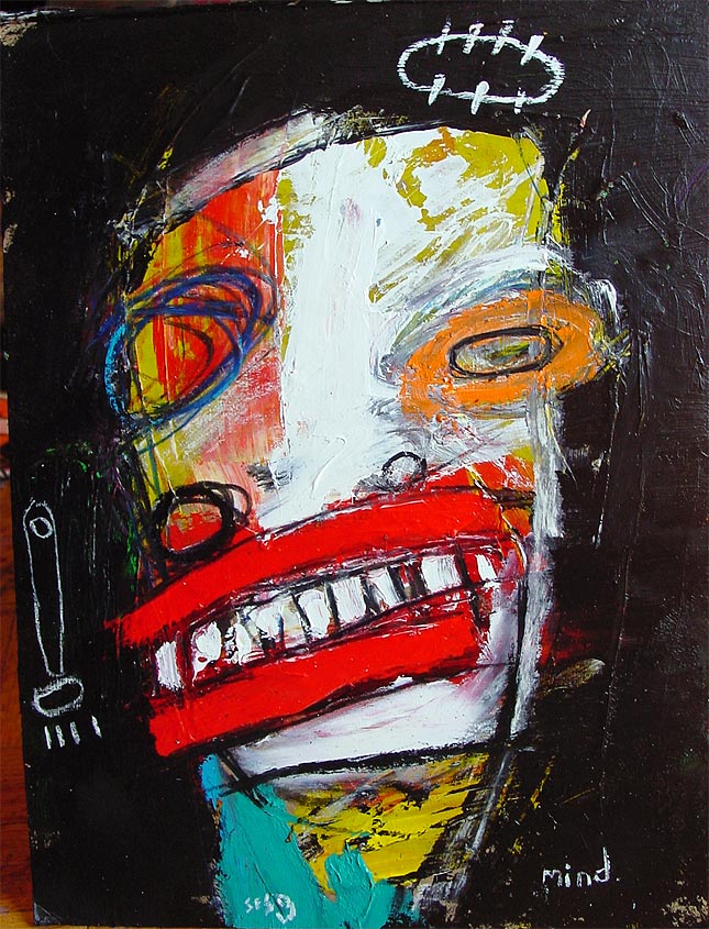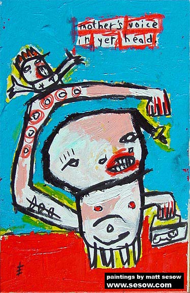 "Mother's voice inside yer' head." approx. 4" x 6" acrylic/mixed on matboard *SOLD