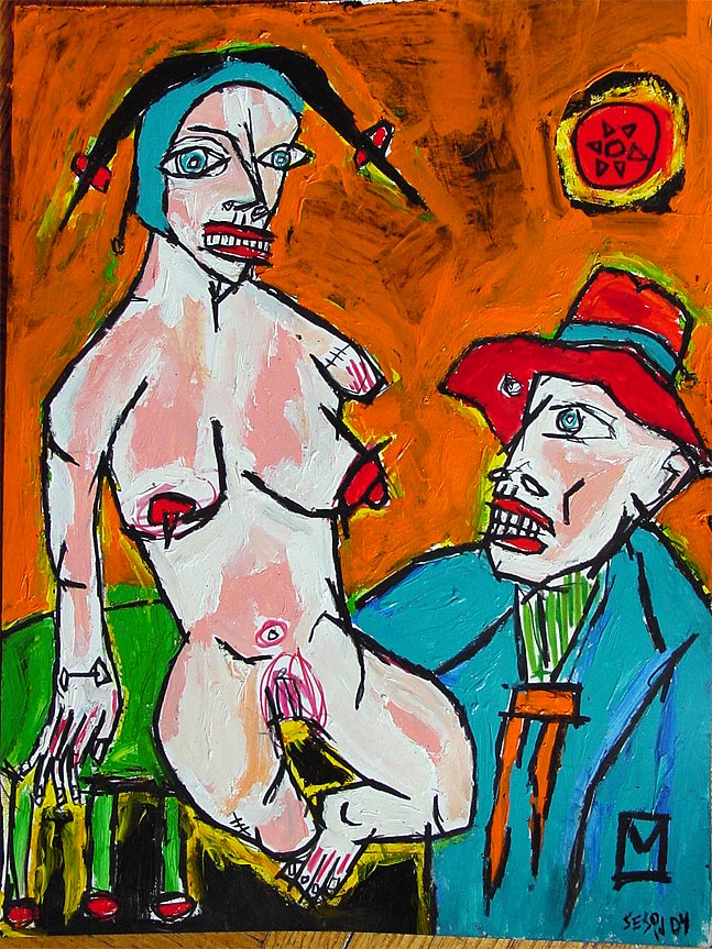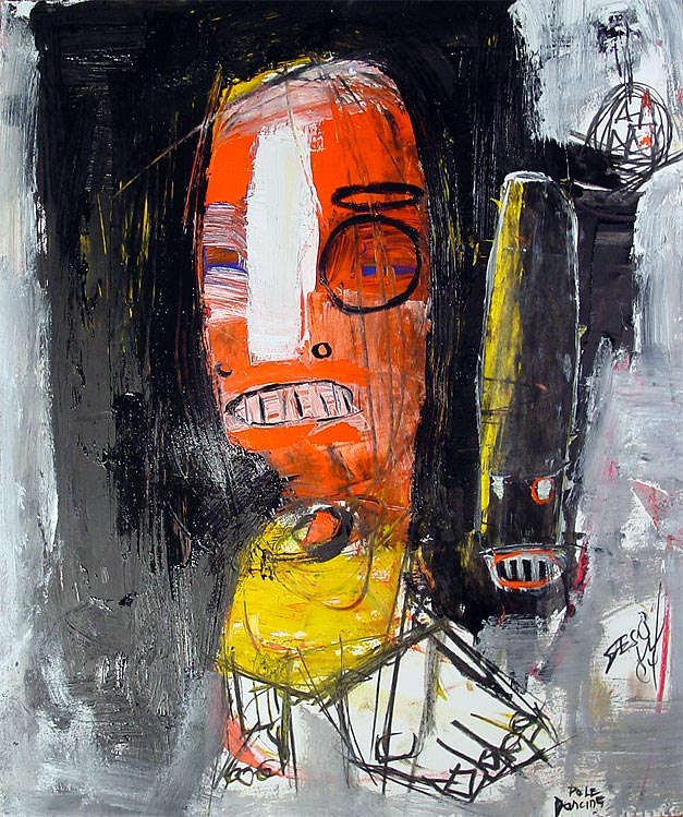 "Pole Dancing" 14" x 17" oil/mixed on bristol paper *SOLD
