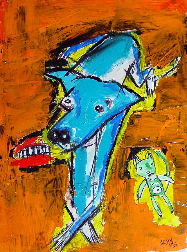 "Found puppy." 11" x 14" acrylic/mixed on cardboard $250