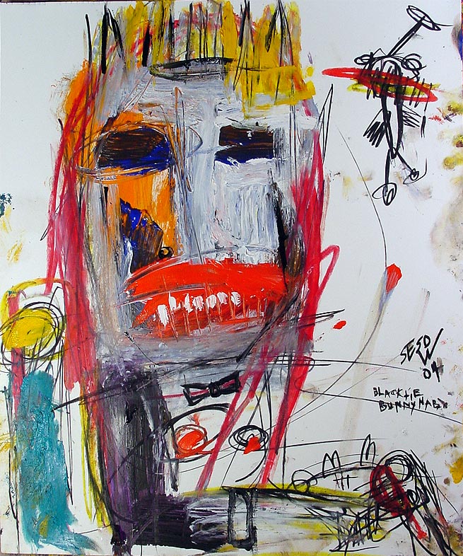 "Black tie bunny nab." 14" x 17" oil/mixed on bristol paper $150
