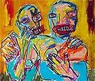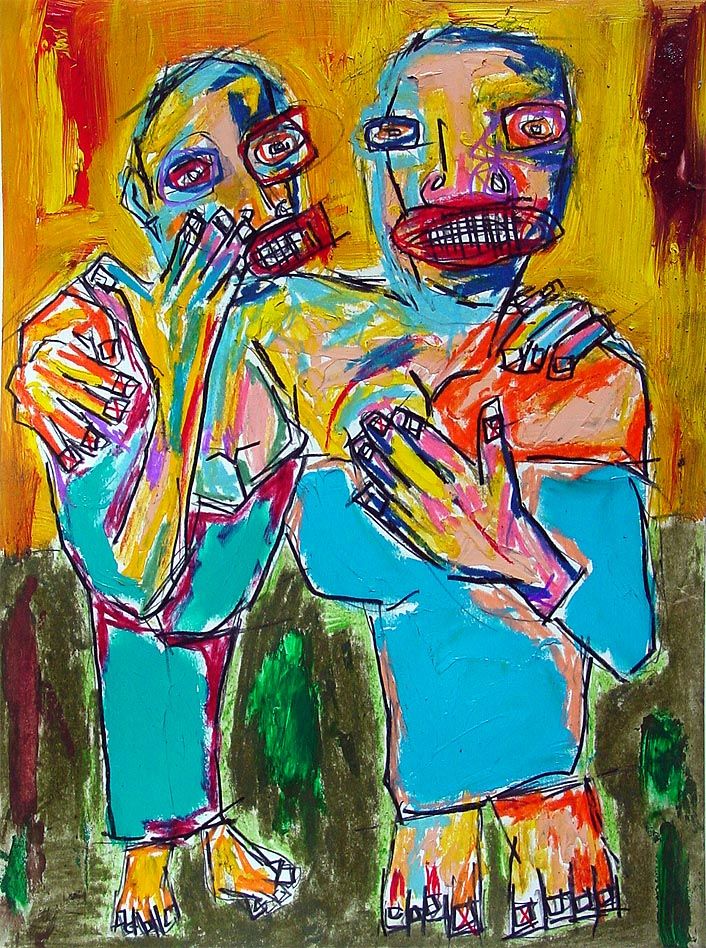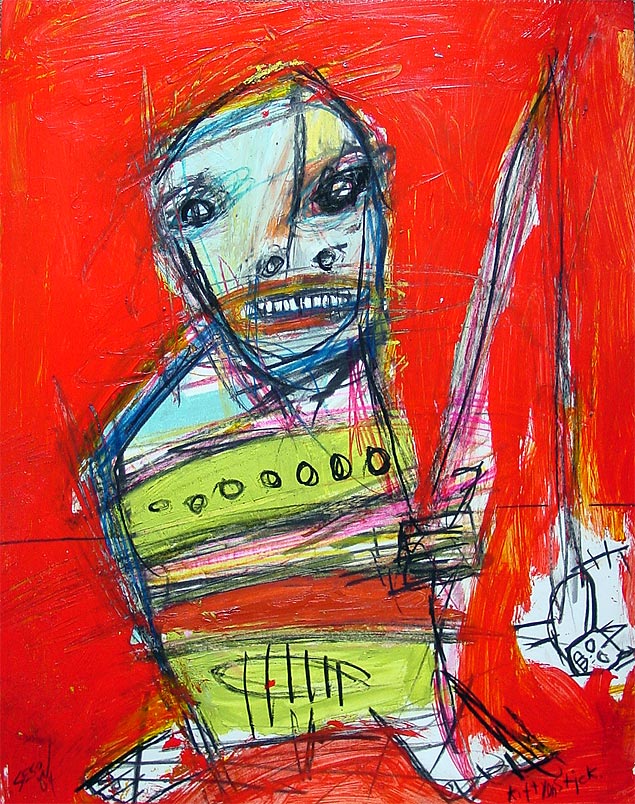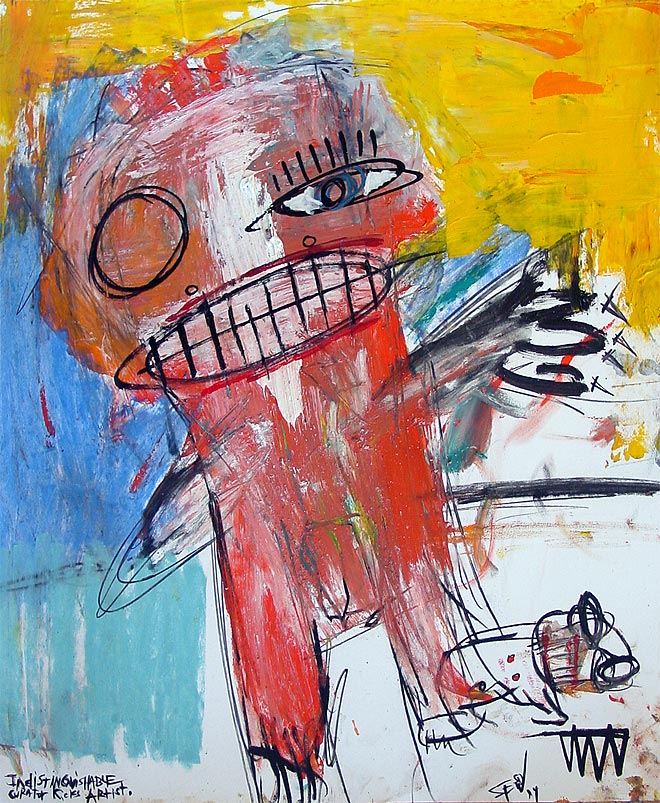 "Indistinguishable curator kicks artist." 14" x 17" oil/mixed on bristol paper $150