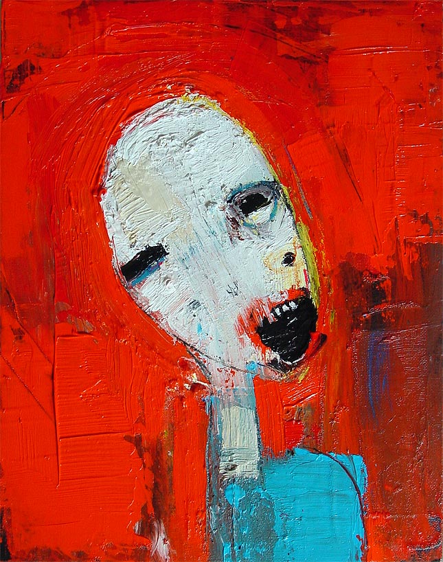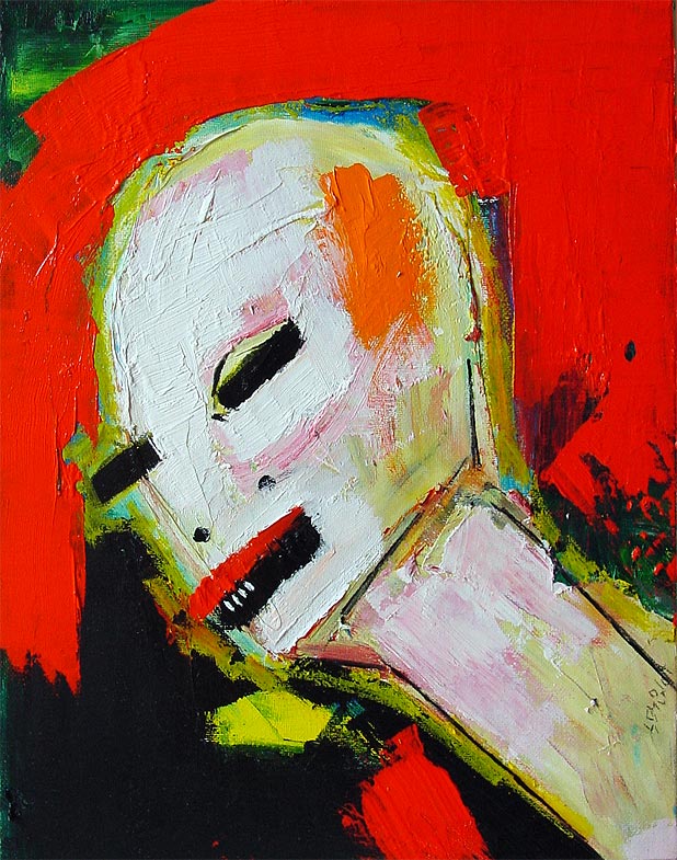"A head in the red" 11" x 14" oil/acrylic/mixed on canvasboard $225