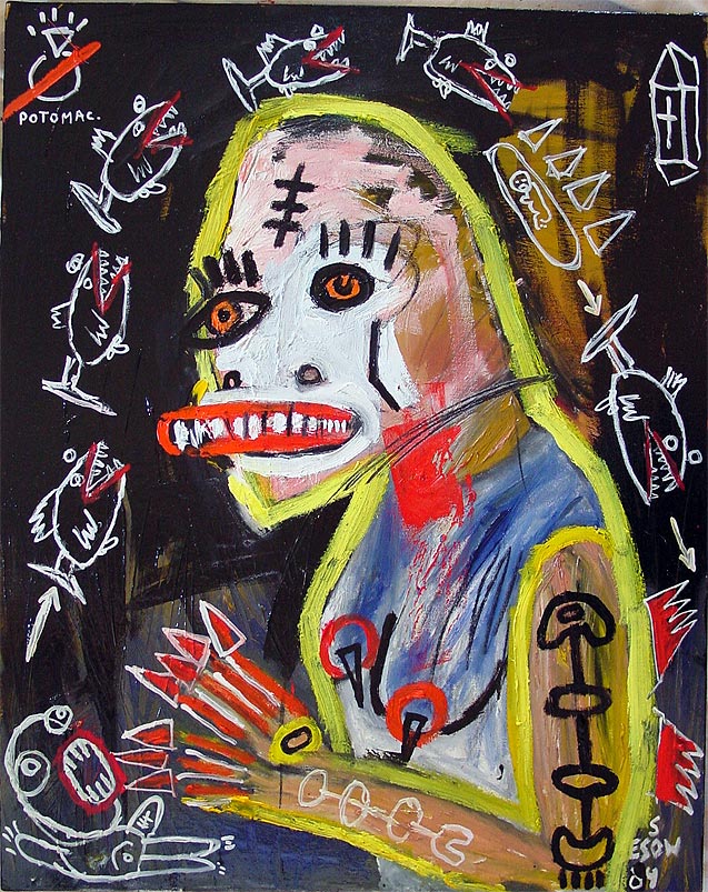 "Succubus (poster boy 2004, counting piranha)" 30" x 24" oil on stretched canvas (1994,2004) $300
