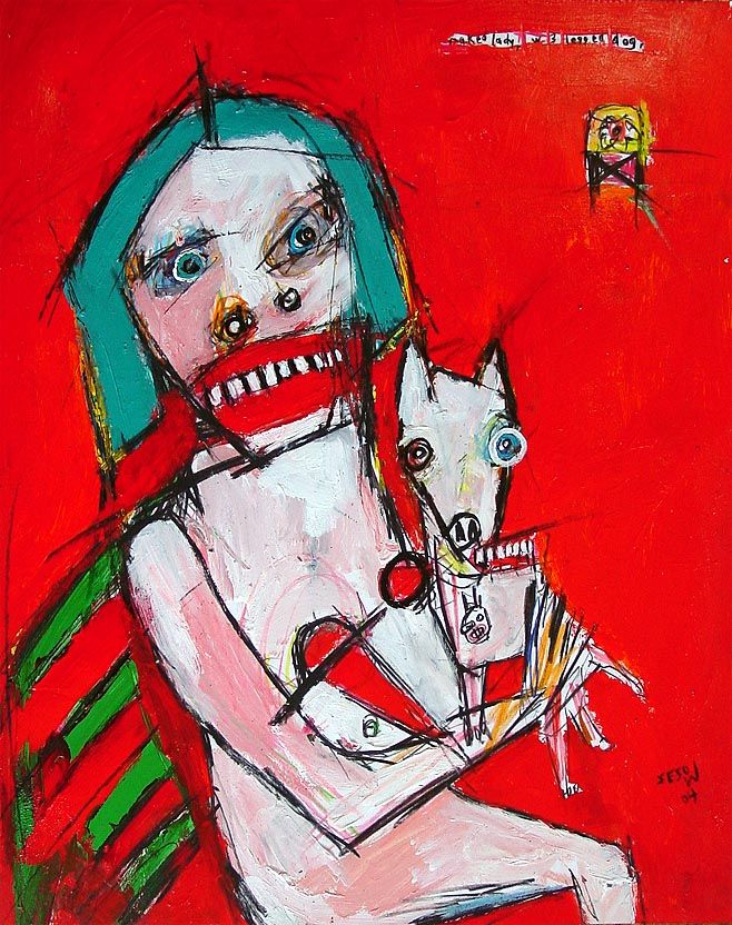 "Naked Lady (w/ 3 legged dog)" 11" x 14" acrylic/mixed on bristol paper *SOLD