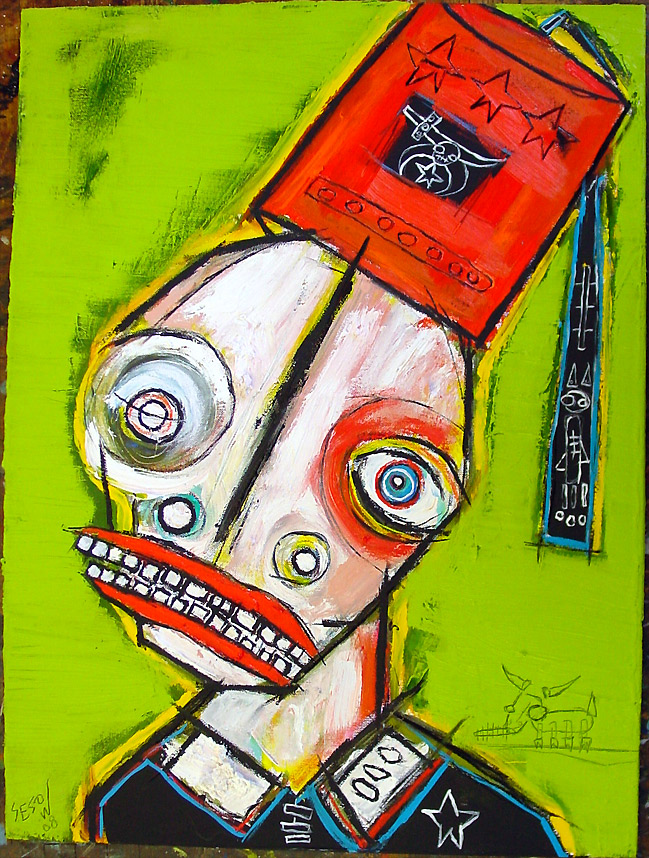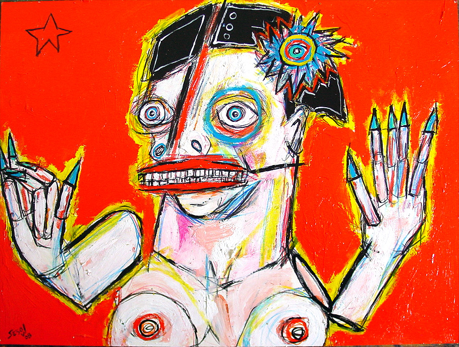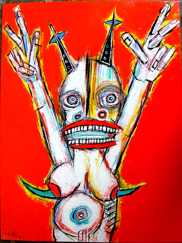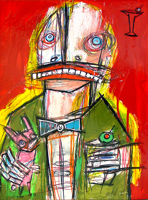 Collaborative with Linda King (#3) 11"x 14 acrylic/mixed on stretched canvas Poem by Linda King will be written/added/signed by her in 'white space' (not done yet,available mid-april 2008) *SOLD See more on the Sesow/King project and how to get 'Bukowski: Undigested by CLICKING HERE. |