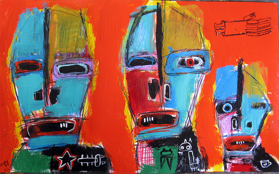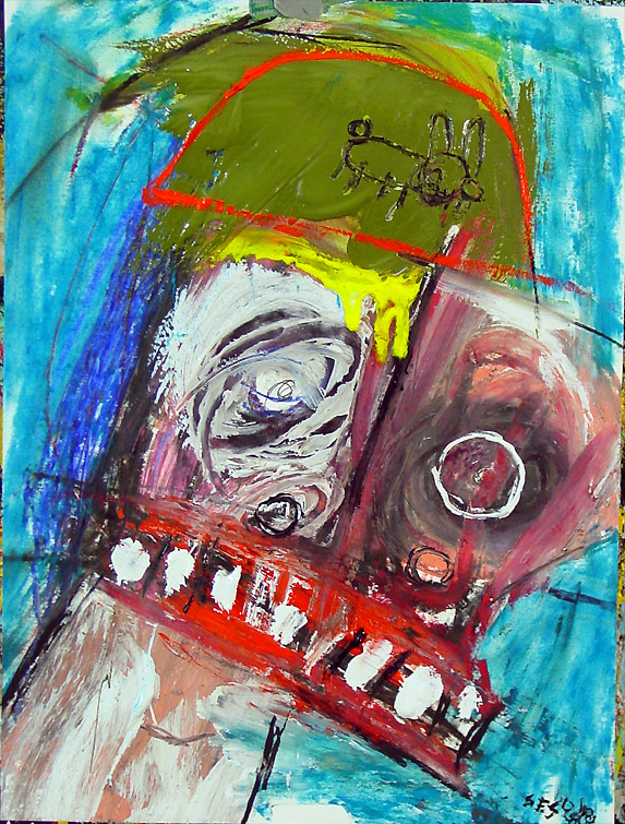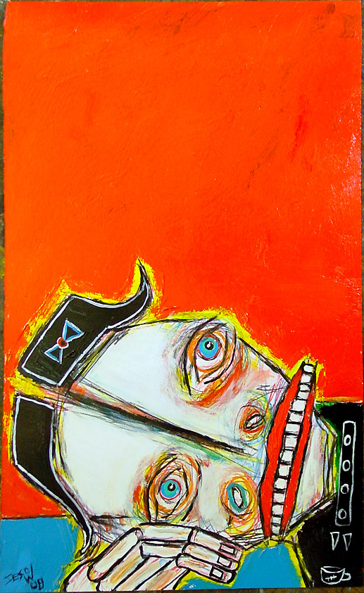 "head case" 8.5" x 14" acrylic/mixed on bristol paper *SOLD |