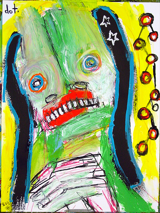 "Hobby Dot" 9" x 12" acrylic/mixed on bristol paper $60 |