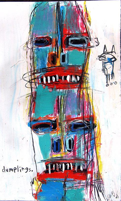 "dumplings" 8.5" x 14" acrylic/mixed on bristol paper *SOLD |