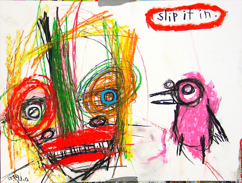 "Slip it In" 9" x 12" acrylic/mixed on bristol paper *SOLD |
