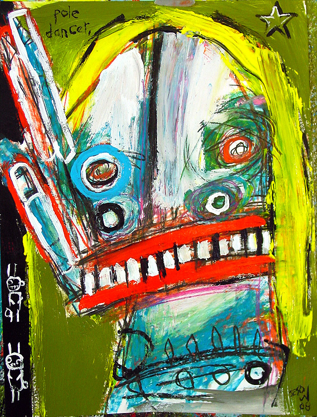 "Pole Dancer" 9" x 12" acrylic/mixed on bristol paper *SOLD |
