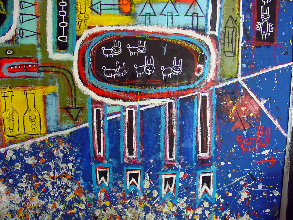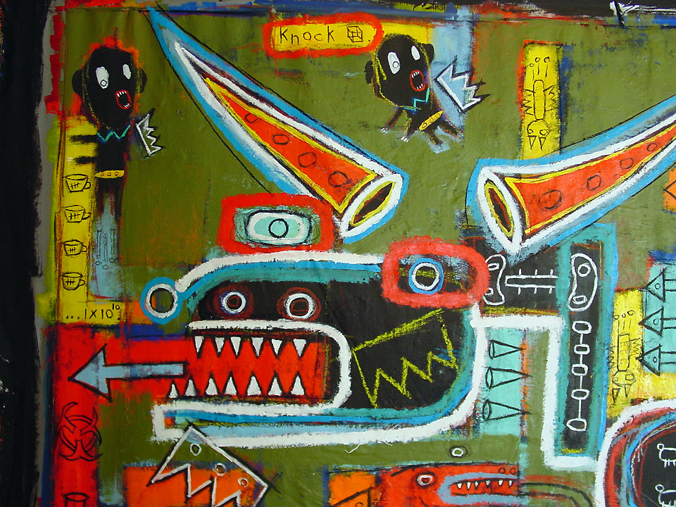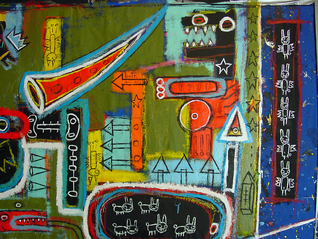 "Knock Box" 67" x 59" livestock markers, livestock crayon and livestock ink with acrylic and oil on unstretched canvas *SOLD FULL view... DETAIL1... DETAIL2... DETAIL3 |