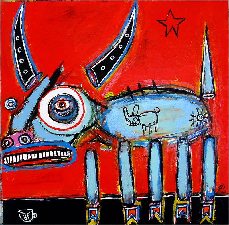 "Plebian Bull, consumed a villager and bunny" 17" x 14" oil/mix on bristol paper *SOLD |