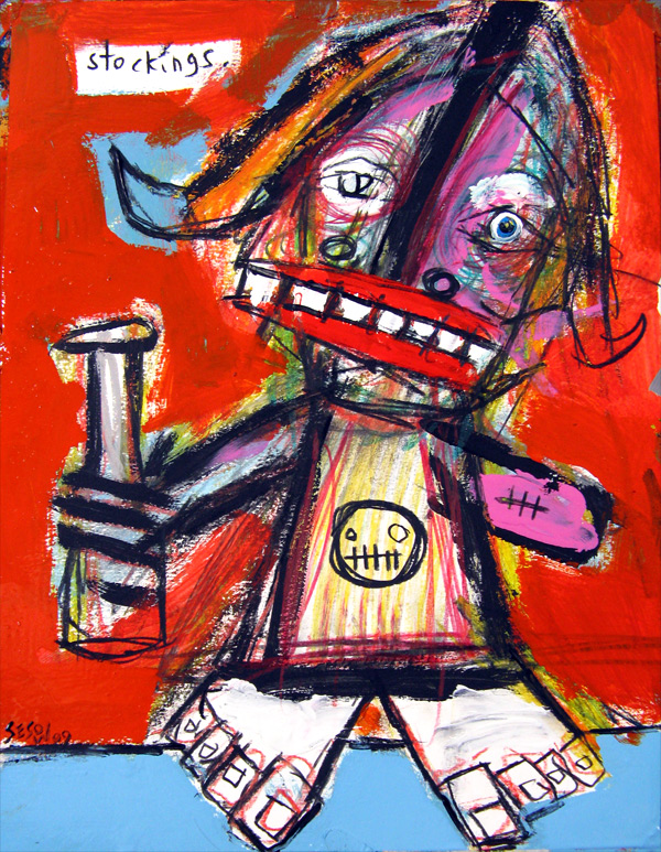 "no Stockings" 10.5" x 13.5" acrylic/mix on paper $100 |