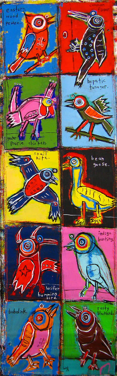 "a guide to field identification of north america birds, #2" 60" x18" acrylic/mix on DC street banner *SOLD |