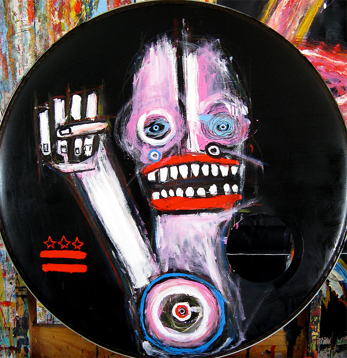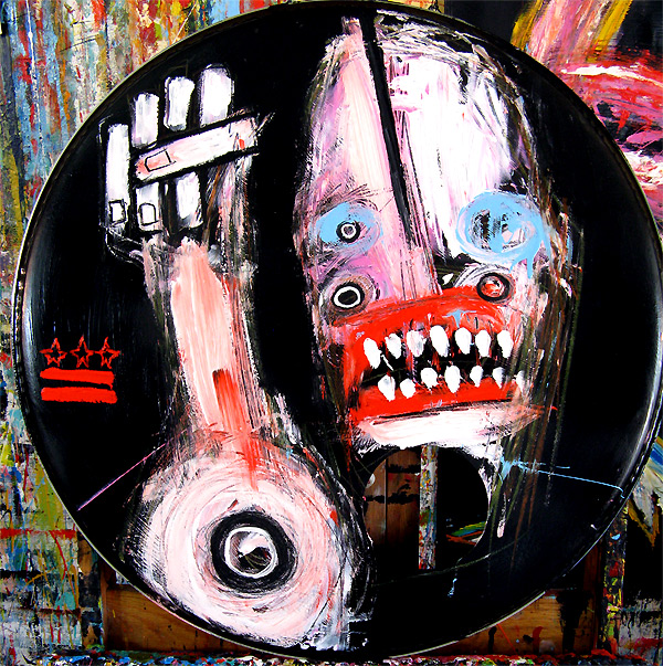 "empty space" 21" diameter acrylic/mix on drum head *SOLD |