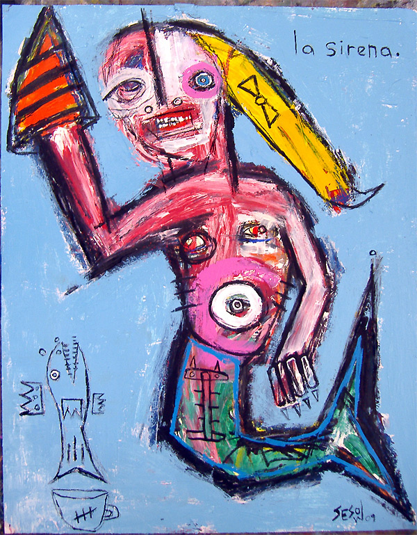 "La Sirena" 19" x 24" acrylic/mix on paper $180 |