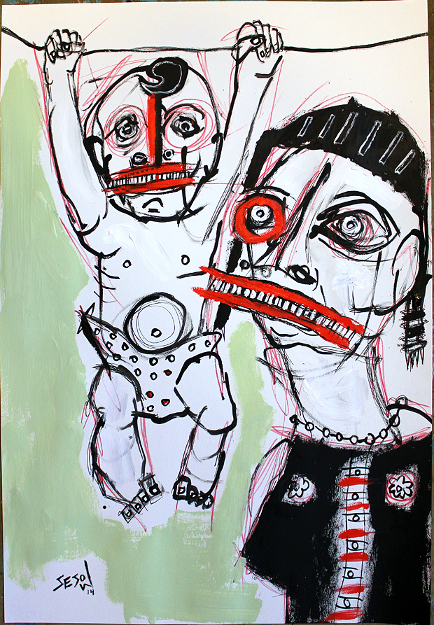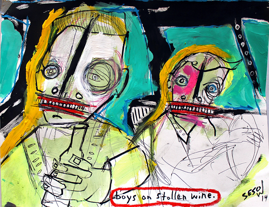 "Boys on Stolen Wine" acrylic/mix on papper 11" x 14" *SOLD email sesow@sesow.com to reserve/ask about purchasing. please include url and description. |