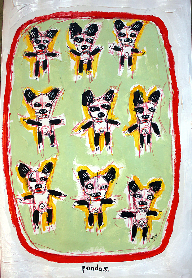 "Pandas" acrylic/mix on watercolor paper 22" x 15" *SOLD email sesow@sesow.com to reserve/ask about purchasing. please include url and description. |
