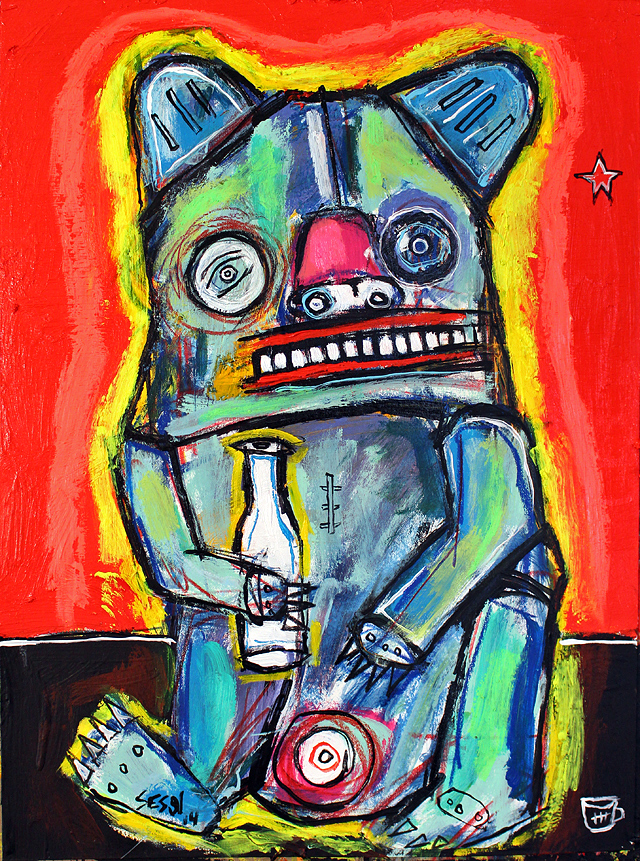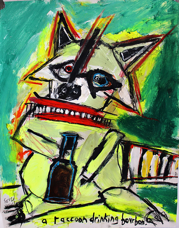 "Raccoon Drinking Bourbon" acrylic/mix on papper 11" x 14" *SOLD email sesow@sesow.com to reserve/ask about purchasing. please include url and description. |