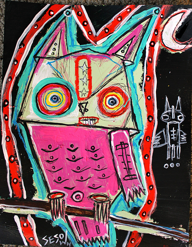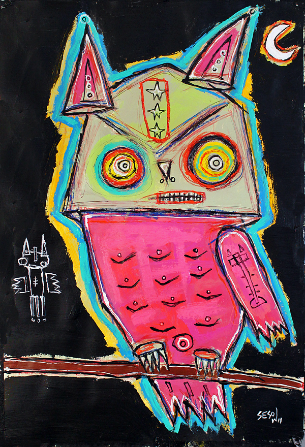 "Night Owl" acrylic/mix on watercolor paper 22" x 15" *SOLD email sesow@sesow.com to reserve/ask about purchasing. please include url and description. |