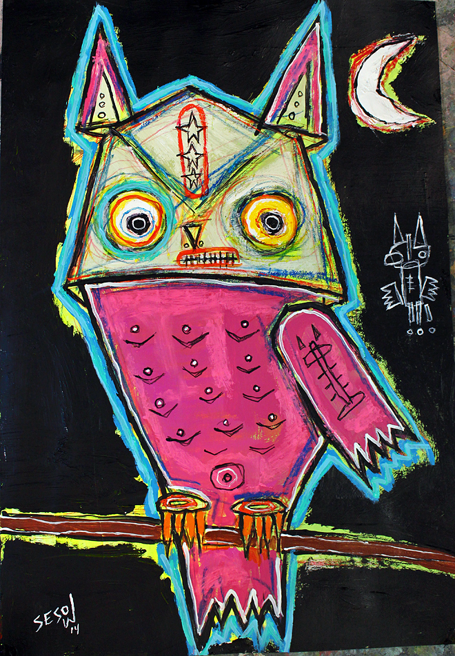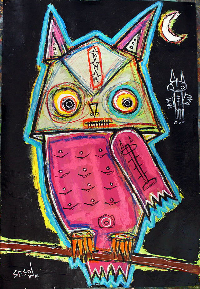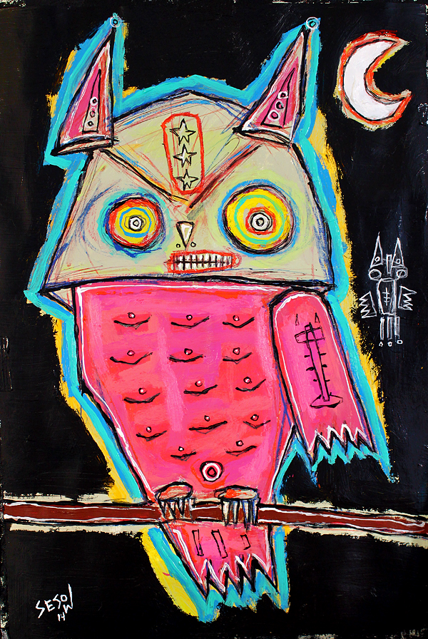 "Owl" acrylic/mix on papper 11" x 14" *SOLD email sesow@sesow.com to reserve/ask about purchasing. please include url and description. |