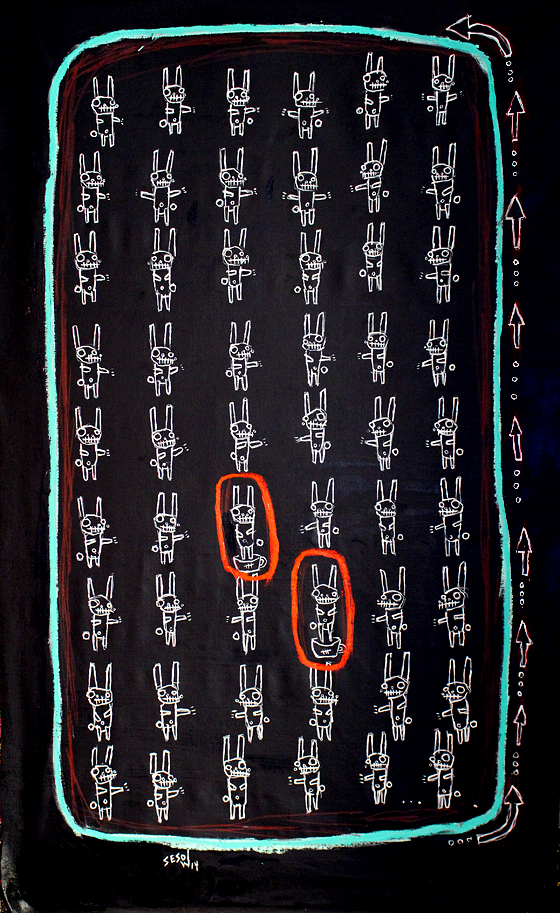 "Outliers" acrylic/mix on unstretched canvas approx. 30" x 48" with black border *SOLD email sesow@sesow.com to reserve/ask about purchasing. please include url and description. |