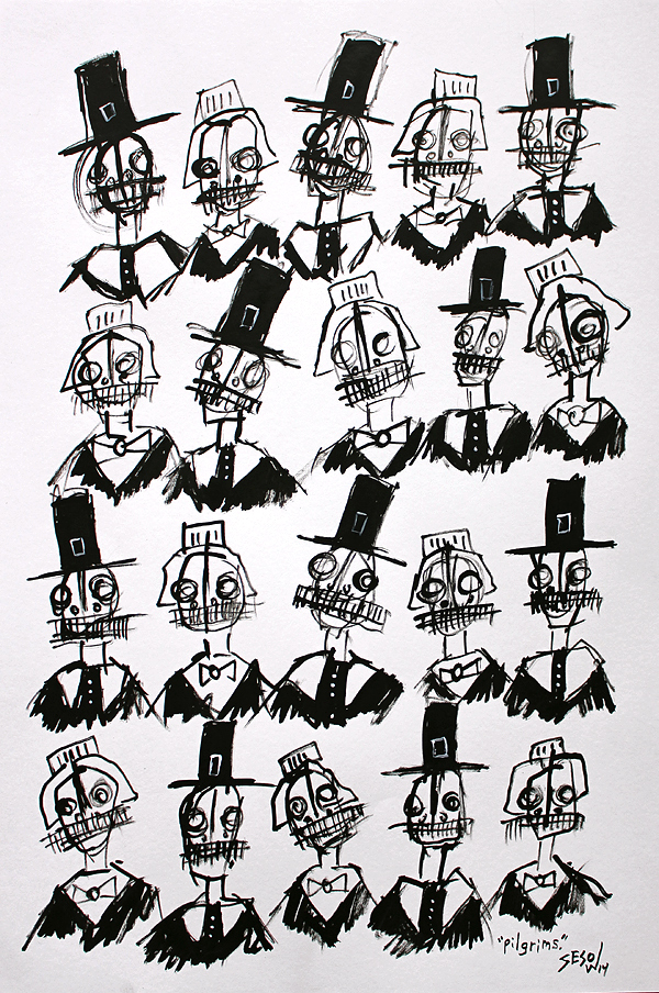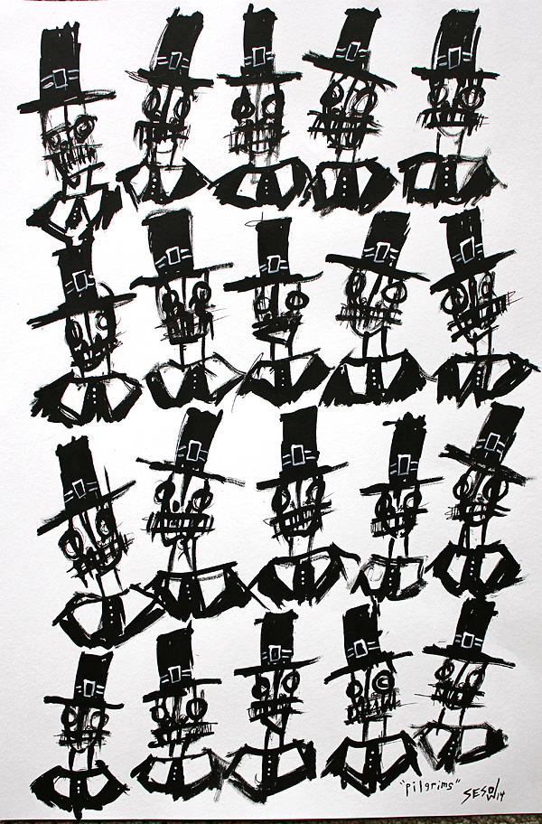 "Screaming Pilgrims" acrylic on watercolor paper 22" x 15" *SOLD email sesow@sesow.com to reserve/ask about purchasing. please include url and description. |