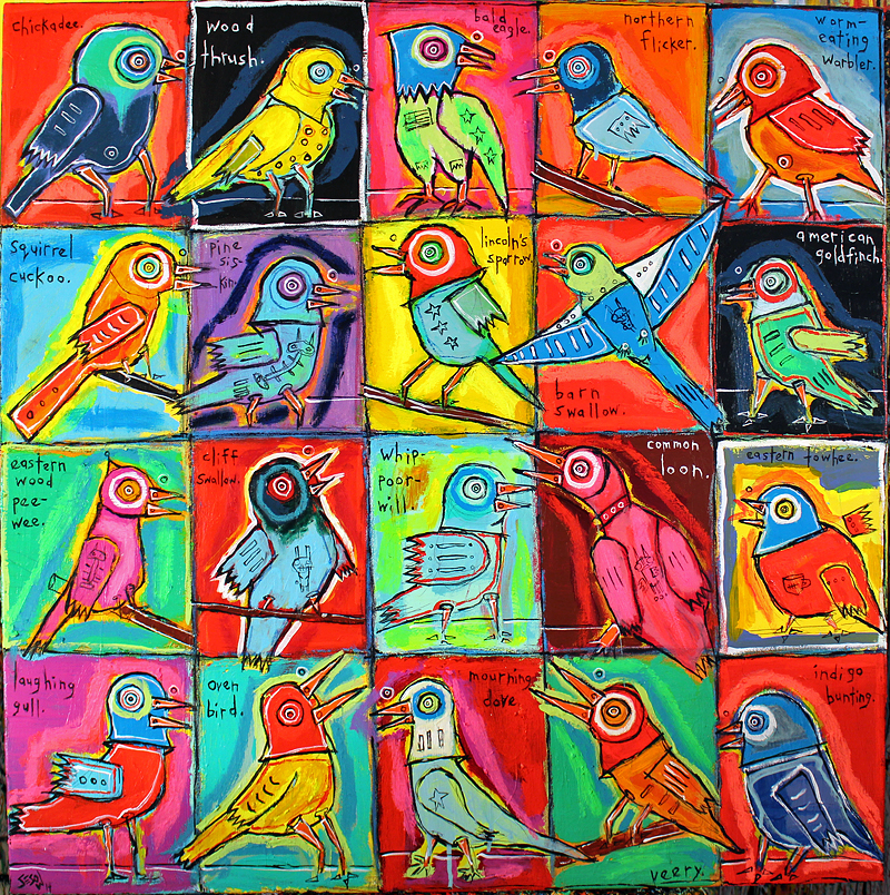 "DC Birds" acrylic/mix on stretched canvas 36" x 36" *SOLD email sesow@sesow.com to reserve/ask about purchasing. please include url and description. |