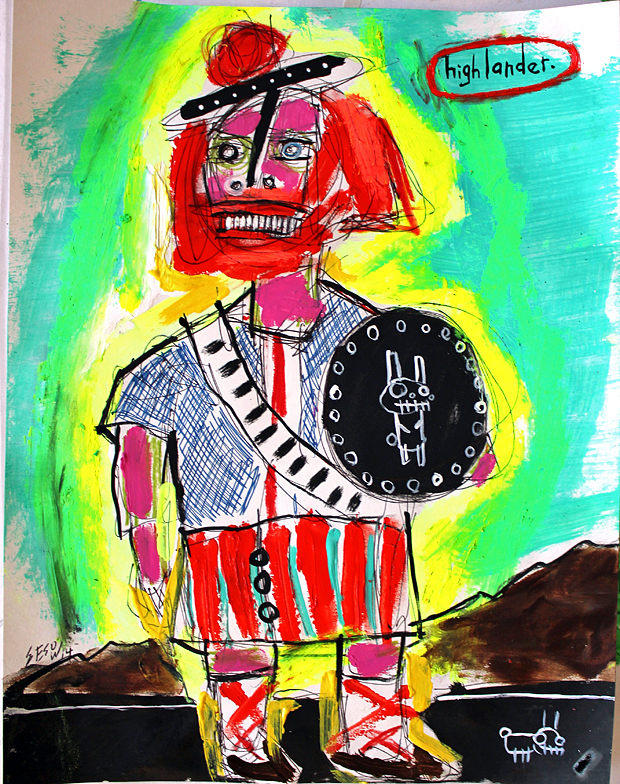 "Highlander" acrylic/mix on papper 11" x 14" *SOLD email sesow@sesow.com to reserve/ask about purchasing. please include url and description. |