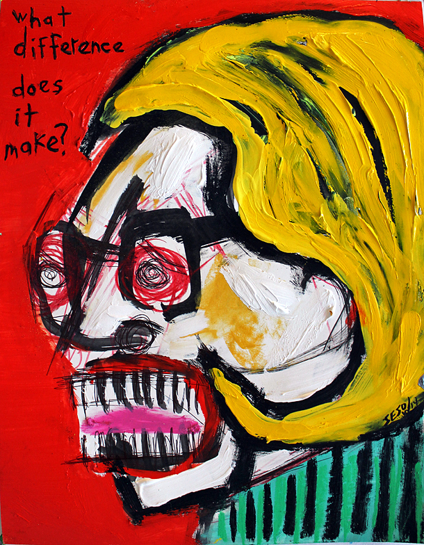 "What Difference Does it Make" acrylic/mix on papper 11" x 14" $80 email sesow@sesow.com to reserve/ask about purchasing. please include url and description. |