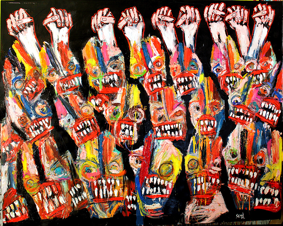 "Mass Protest" oil/mix on canvas 4 feet x 6 feet available from VSA Colorado, part of Matt Sesow's Solo "Access Denied" (August 2014) *SOLD email sesow@sesow.com to reserve/ask about purchasing. please include url and description. |