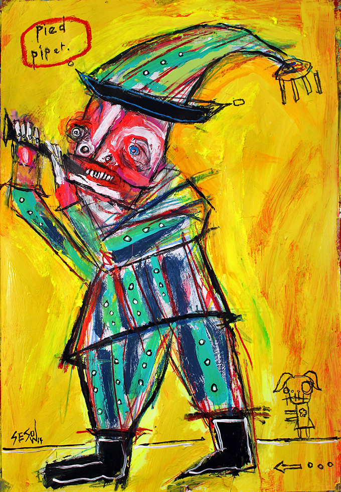 "Pied Piper" acrylic/mix on watercolor paper 22" x 15" *SOLD email sesow@sesow.com to reserve/ask about purchasing. please include url and description. |