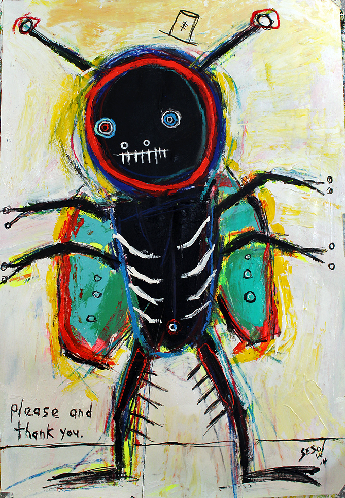 "Please and Thank You, Proper Cricket" acrylic/mix on watercolor paper 22" x 15" $160 email sesow@sesow.com to reserve/ask about purchasing. please include url and description. |