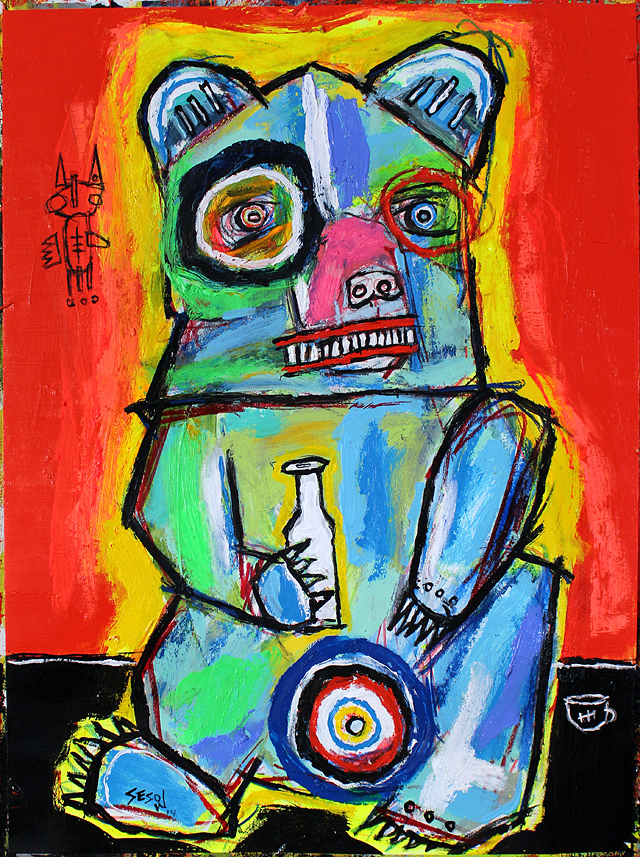 "Bear #3" acrylic/mix on watercolor board 20" x 15" *SOLD email sesow@sesow.com to reserve/ask about purchasing. please include url and description. |