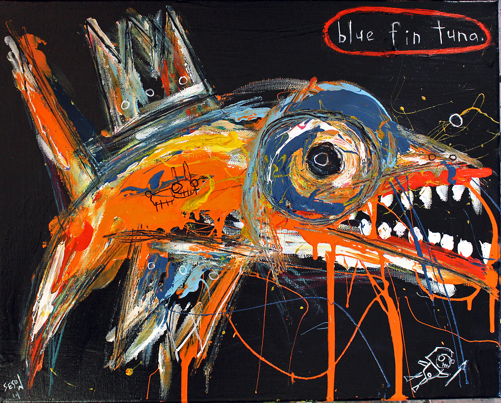 "Blue Fin Tuna" acrylic/oil on stretched canvas 20" x 16" *SOLD email sesow@sesow.com to reserve/ask about purchasing. please include url and description. |