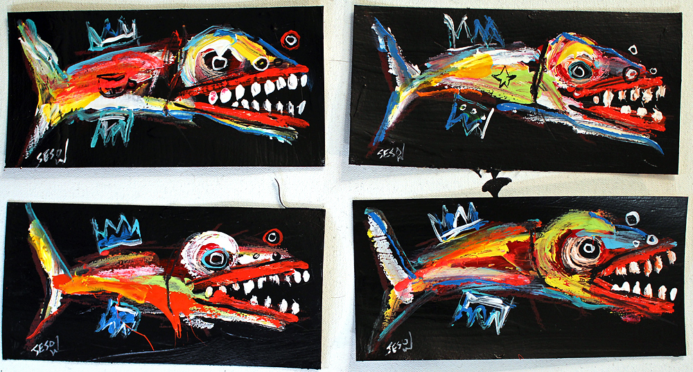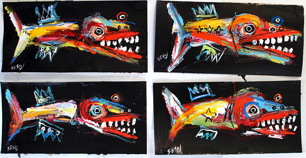 "Small Fish" (set #1) acrylic/oil on watercolor paper 4" x 8" $35/each email sesow@sesow.com to reserve/ask about purchasing. please include url and description. |