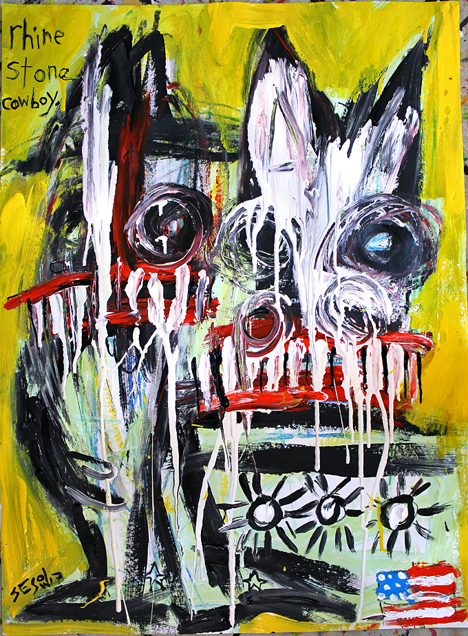 "Rhinestone Cowboy" acrylic on archival watercolor paper 22.5" x 30.5" *SOLD email sesow@sesow.com to reserve/ask about purchasing. please include url and description. |