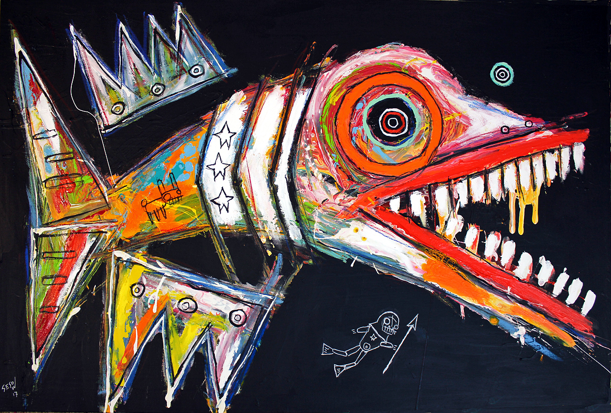 "Fish, with diver" acrylic / oil on stretched canvas 30" x 40" *SOLD email sesow@sesow.com to reserve/ask about purchasing. please include url and description. |