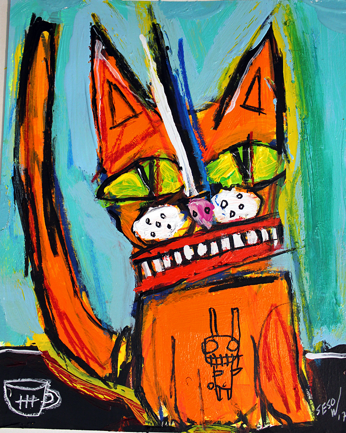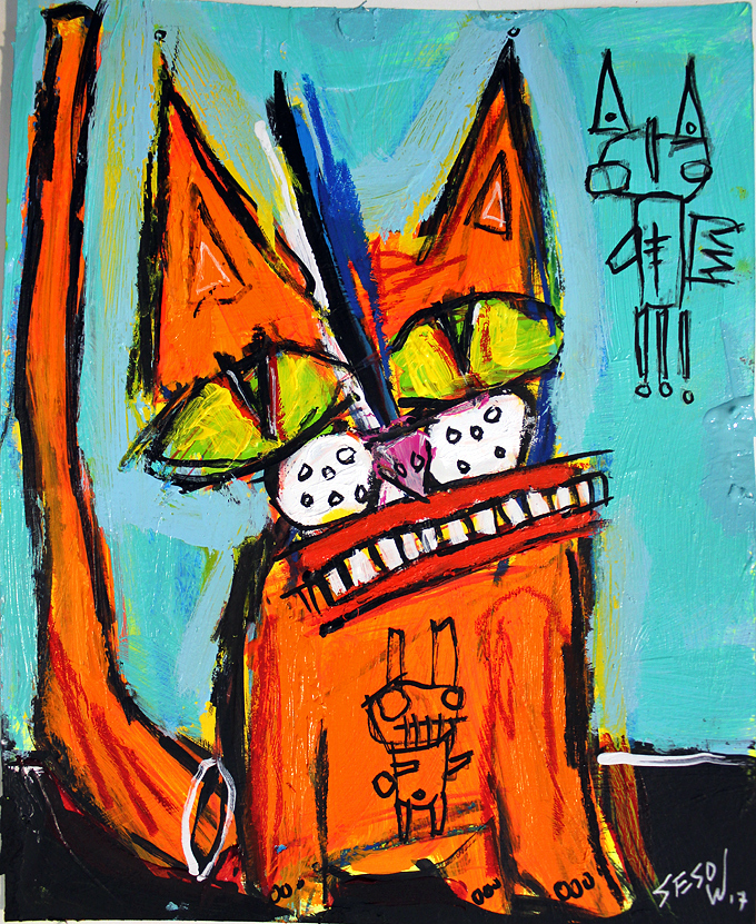 "Good Kitty (orange)" acrylic on archival paper 8"x10" *SOLD email sesow@sesow.com to reserve/ask about purchasing. please include url and description. |