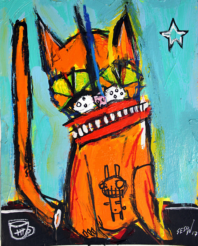"Orange Cat, with star" acrylic on archival paper 8"x10" *SOLD email sesow@sesow.com to reserve/ask about purchasing. please include url and description. |