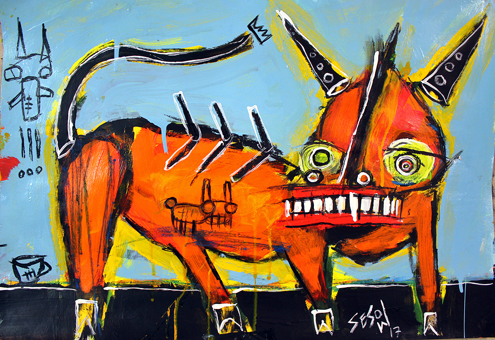 "Orange Bull" acrylic.mix on archival paper 22" x 15" *SOLD email sesow@sesow.com to reserve/ask about purchasing. please include url and description. |