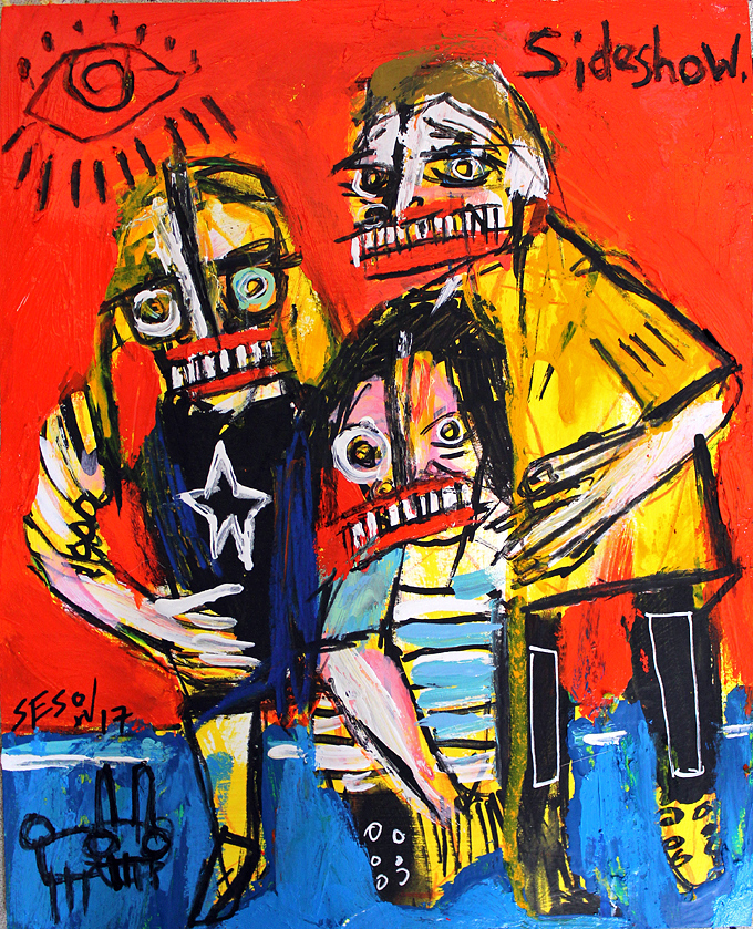 "Sideshow" acrylic.oil on archival watercolor paper 8"x10" *SOLD email sesow@sesow.com to reserve/ask about purchasing. please include url and description. |