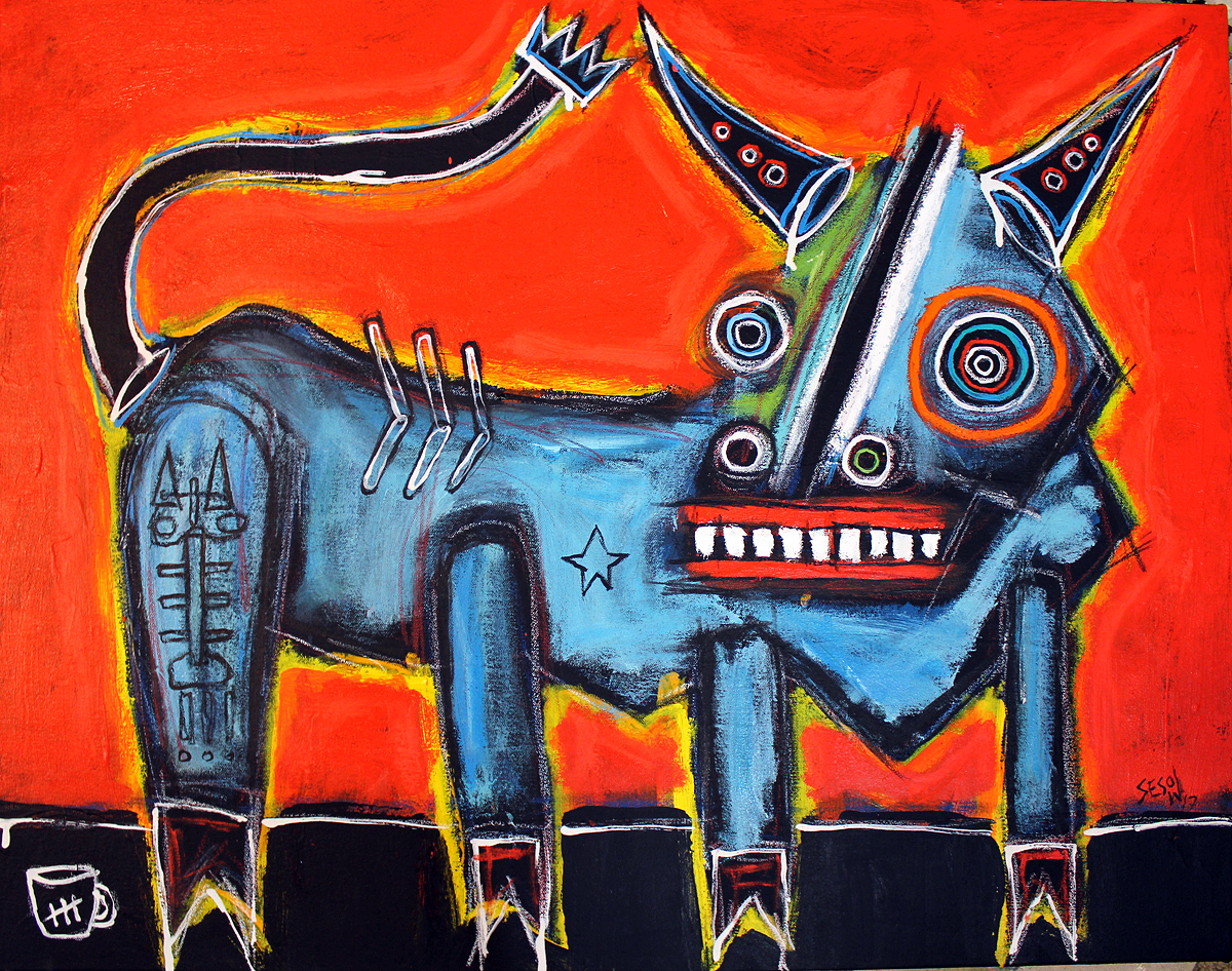 "Bull" acrylic/oil on stretched canvas 28" x 22" *SOLD email sesow@sesow.com to reserve/ask about purchasing. please include url and description. |