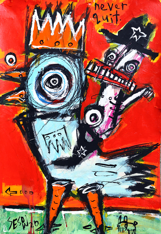 "Never Quit" acrylic/oil on thick watercolor paper 22" x 15" *SOLD email sesow@sesow.com to reserve/ask about purchasing. please include url and description. |